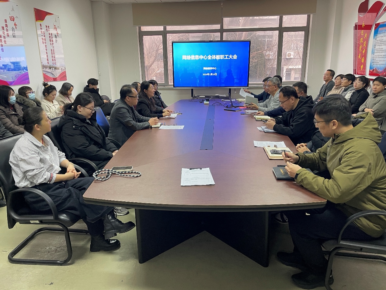 2026年1月16日上午,网络信息中心在214会议室组织召开全体教职工大会,中心班子成员、各部门负责同志及全体教职工参加,会议由党总支书记鲁春光主持。